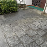 Flecken auf der gesamten Hofeinfahrt. Verfugung teilweise nicht mehr vorhanden. Der optische Zustand eine Katastrophe.