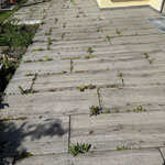 Auch hier auf der Terasse zu sehen, wie Unkraut und Moos nach und nach die Oberfläche angegriffen hat.